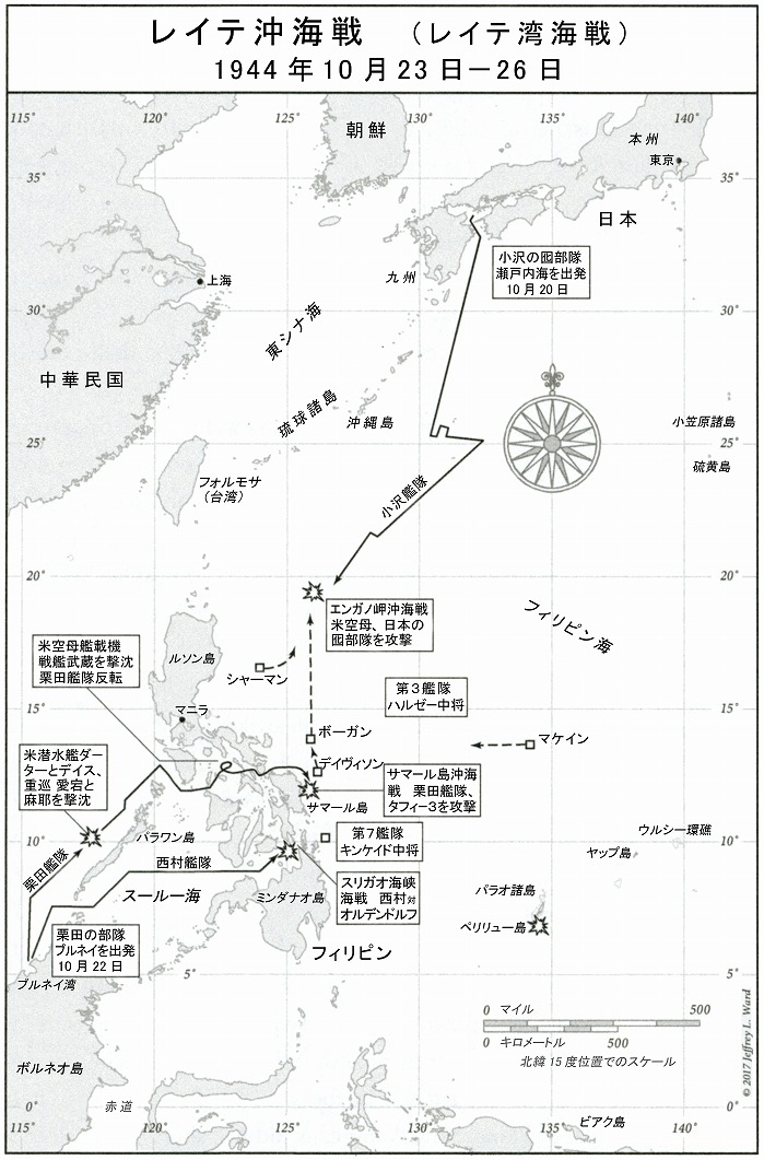 栗田はフィリピンを通過する際、陸上機による航空援護を期待していたが、その希望は2つの理由から全く期待できないものだった。1つは日本軍が10日前に、ハルゼーの空母群からの度重なる航空攻撃をかわす試みの中で、フォルモサ島沖(台湾沖)で500機近くを無益に失い、陸上配備航空機のほとんどを浪費していたことだ。第2の理由は、東京の計画担当者が、少ない航空資産をより有効に使うには、ハルゼーの空母を攻撃することによって、栗田に「間接的支援」を提供することだと考えたからだ。その結果、栗田の艦隊がシブヤン海に入ったとき、彼の艦隊の上空をわずか4機の友軍機が旋回したのみだった。